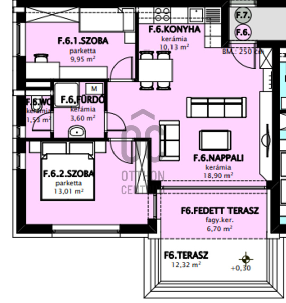 -Földszinti 57,12 nm-es lakás, 6,79nm erkéllyel
