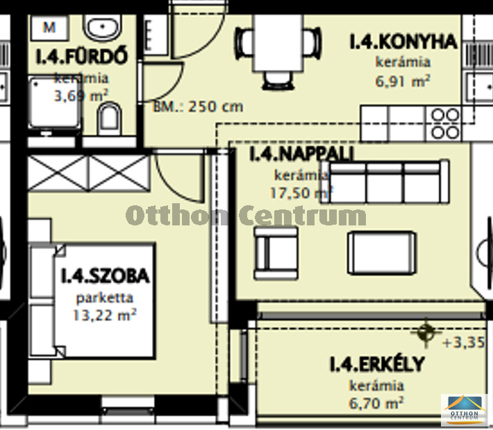 Első emeleti 41,32 nm-es lakás, 6,7 nm erkéllyel.