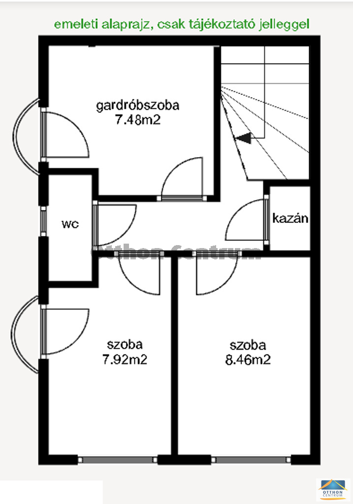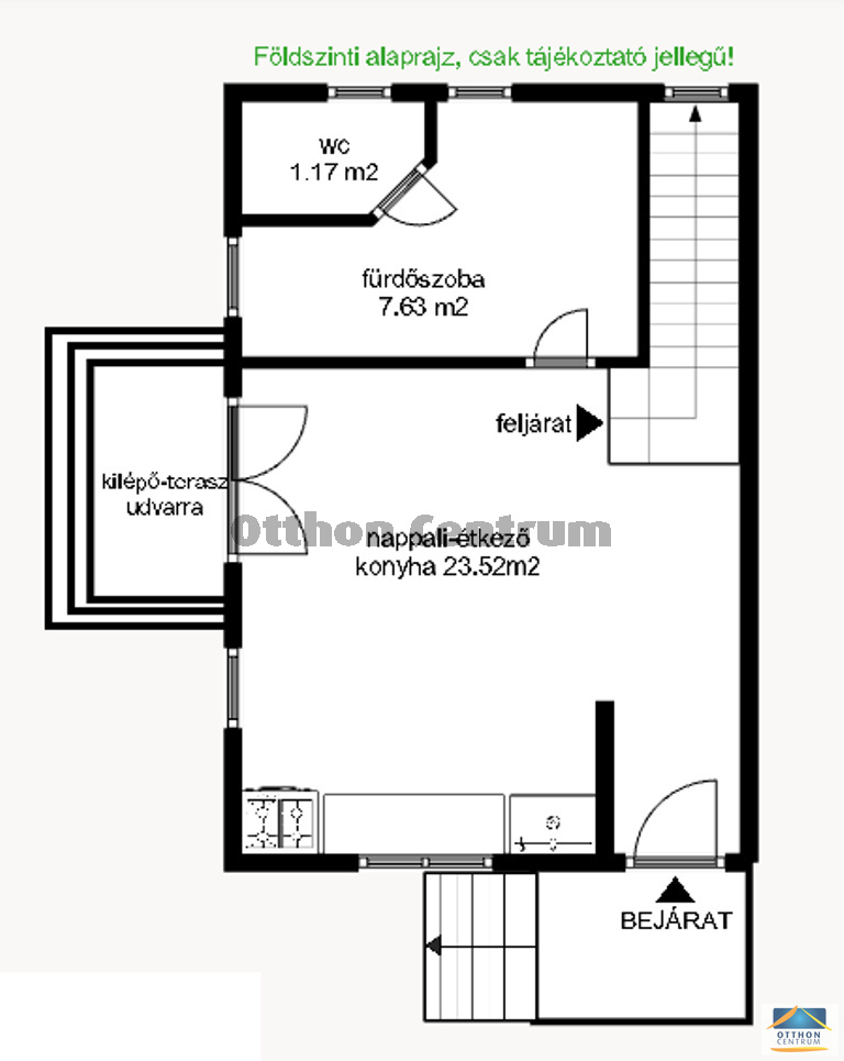 - földszinten nappali-étkező-konyha, fürdő WC-vel,