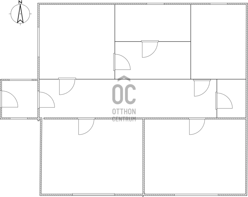 3 szoba, konyha, fürdőszoba, közlekedő, háztartási helyiség, kamra.