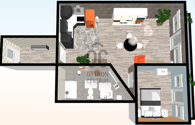 Ez a sorházi lakás a földszinten van, ahol a tágas nappali-konyhában bőven elfér egy nagy étkező asztal is, a...