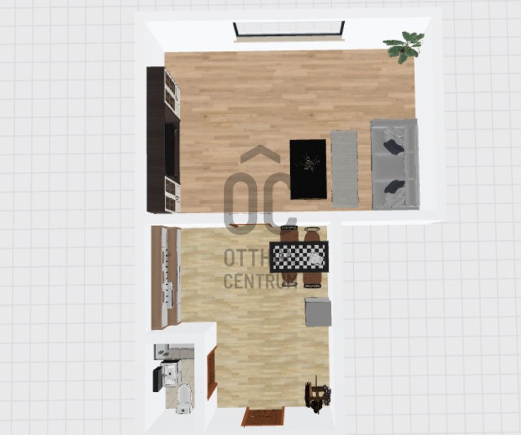 A garzon 24 nm-es, 1 szoba, konyha-előszoba, fürdőszoba, + fekvő galéria 6 nm..