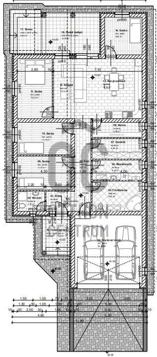 - 182 nm ebből: lakótér : 131 m2 + 29,7 nm garázs /két állásos/ + 15,48 nm fedett terasz és 5,8 nm terasz