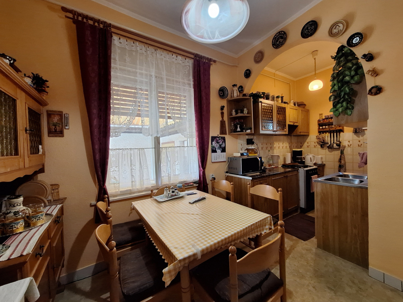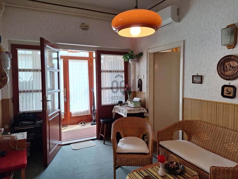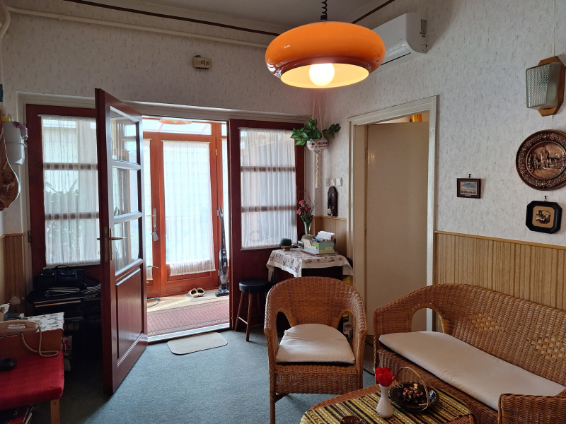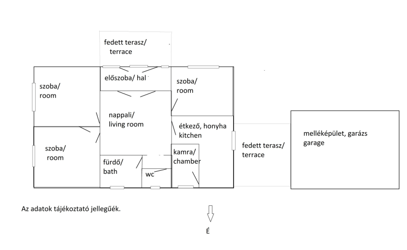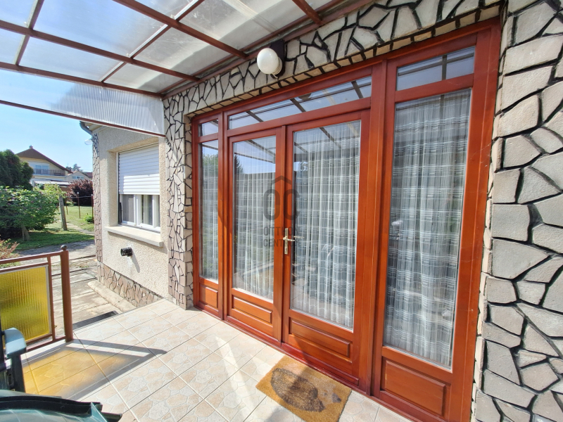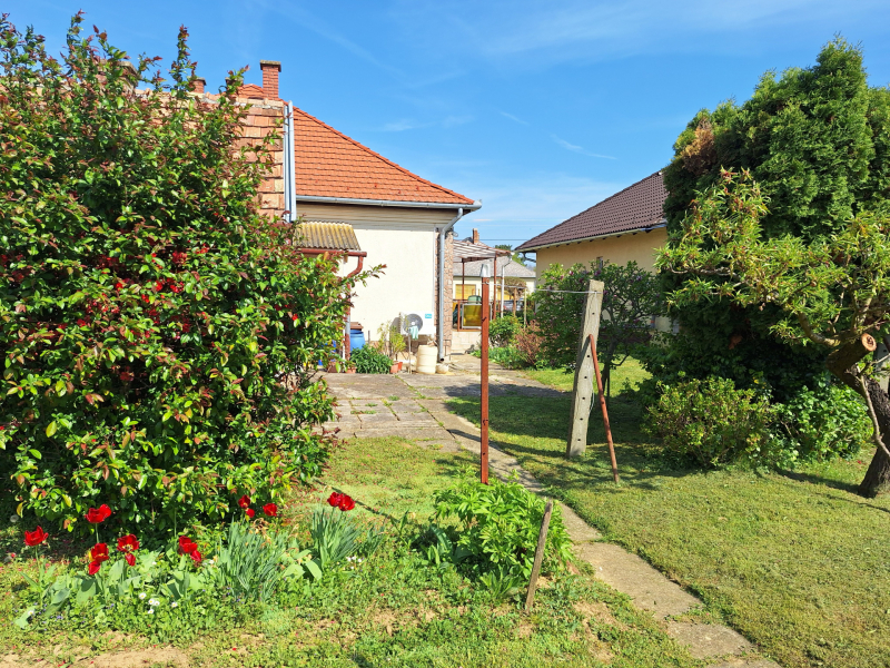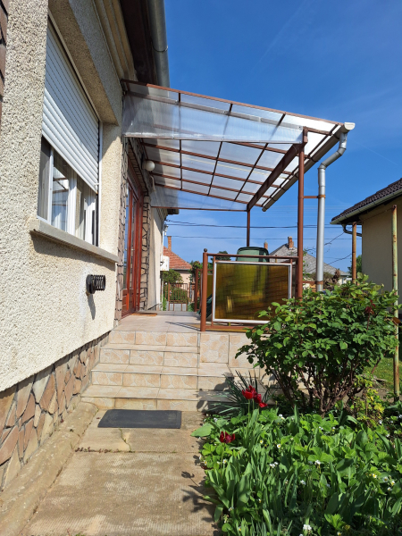 - 3 hálószoba, étkezős konyha , nappali, fürdőtől elkülönített mellékhelyiség, 2 fedett terasz, garázs, rendezett, parkosított udvar