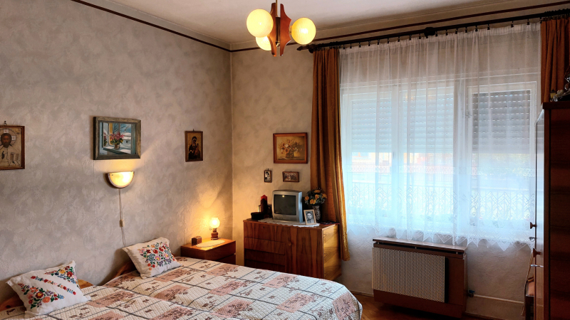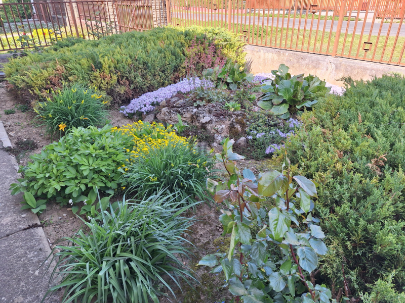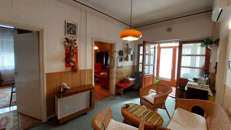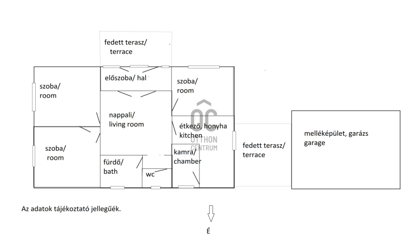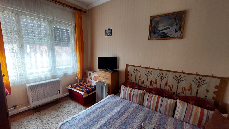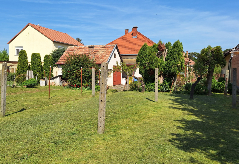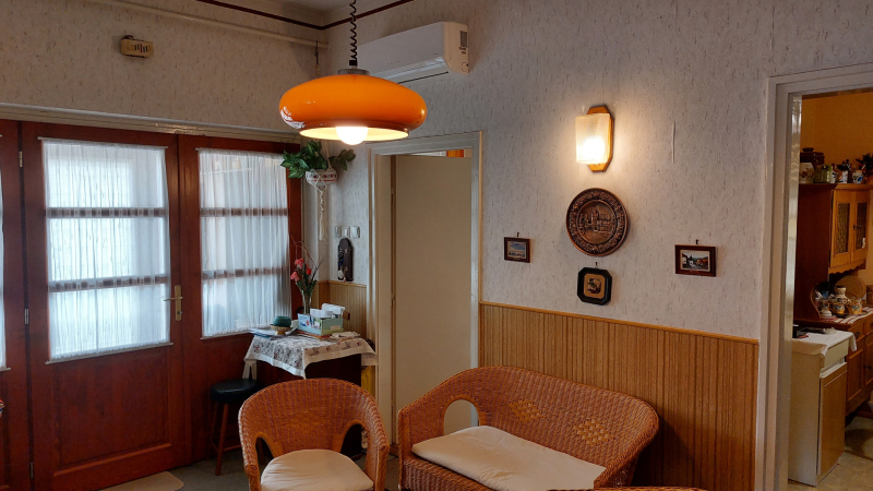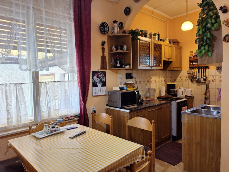 - 3 hálószoba, étkezős konyha , nappali, fürdőtől elkülönített mellékhelyiség, 2 fedett terasz, garázs, rendezett, parkosított udvar