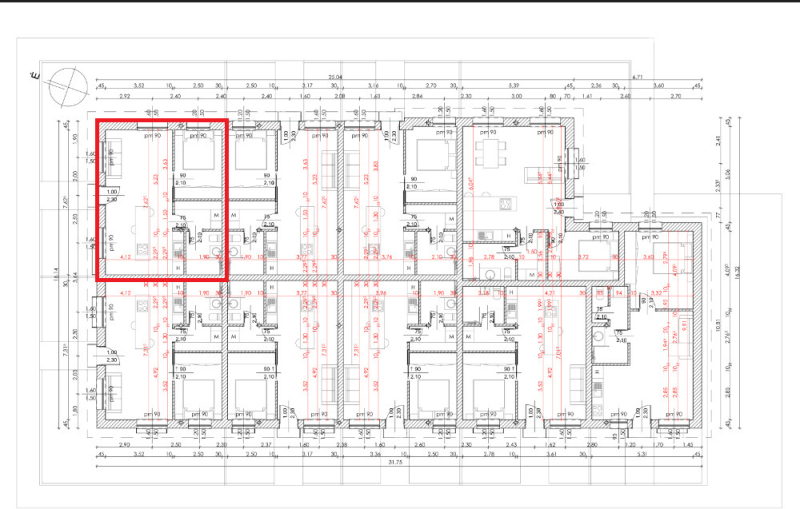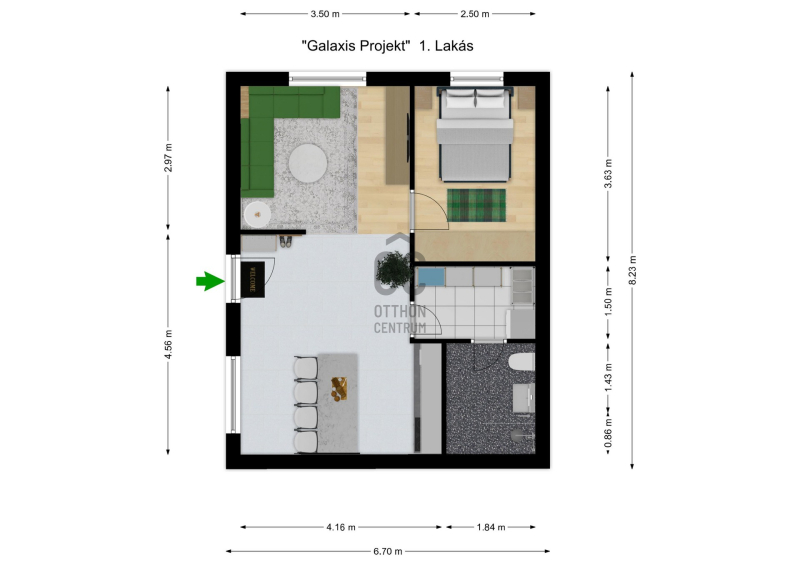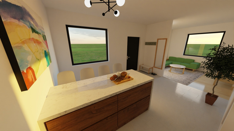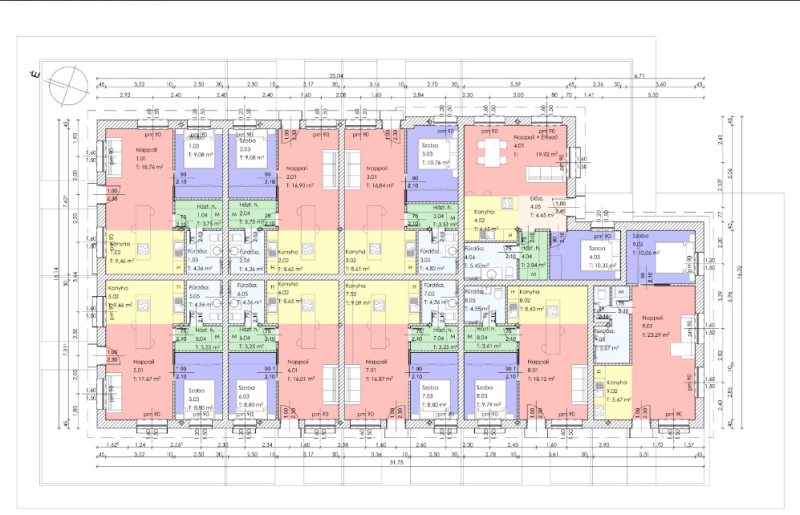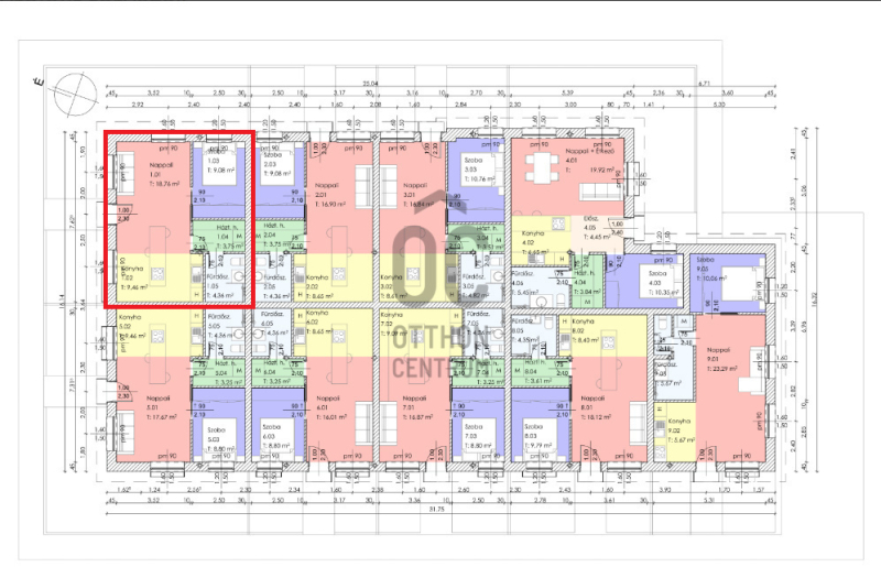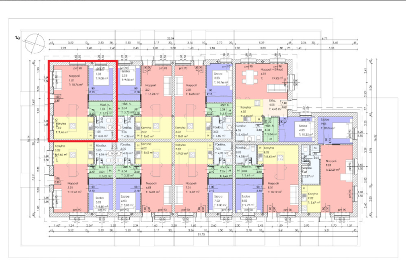 Az 1. lakás mérete: 45.41 nm. Nappali, konyha, hálószoba, háztartási helyiség és fürdőszoba kerül kialakításra az ingatlanban.