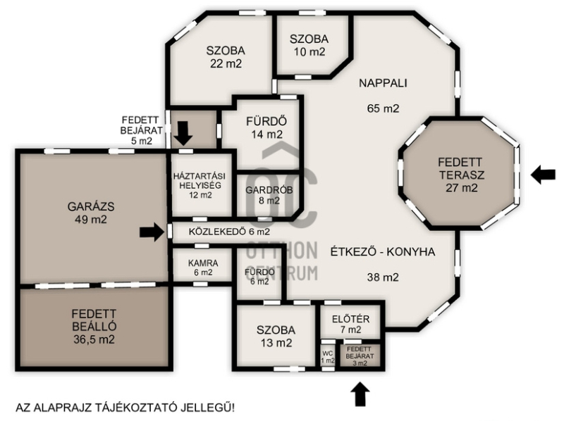 • Nappali + 3 szoba, 2 fürdőszoba + WC