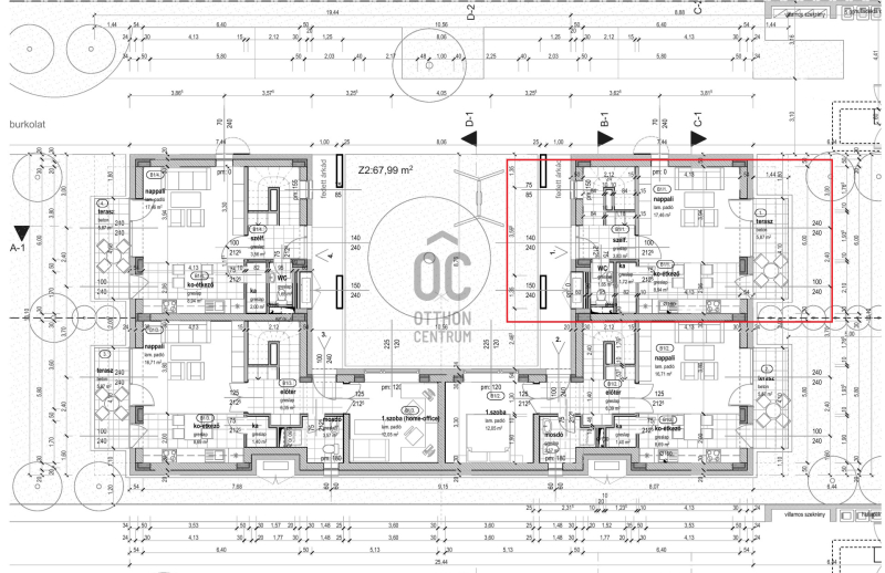 Nappali + 3 szobás, belső kétszintes lakás. A lakáshoz tartozik egy 8 nm-es fedett terasz és egy 6 nm-es tornác is. Az ingatlanhoz tartozik egy kötelezően megvásárolandó gépkocsi beálló, melynek ára 1,5 millió forint valamint saját udvarrésszel is rendelkezik. A lakóparkon belül játszótér, pihenőpark kerül kialakításra.- 30-as Porotherm tégla fala...