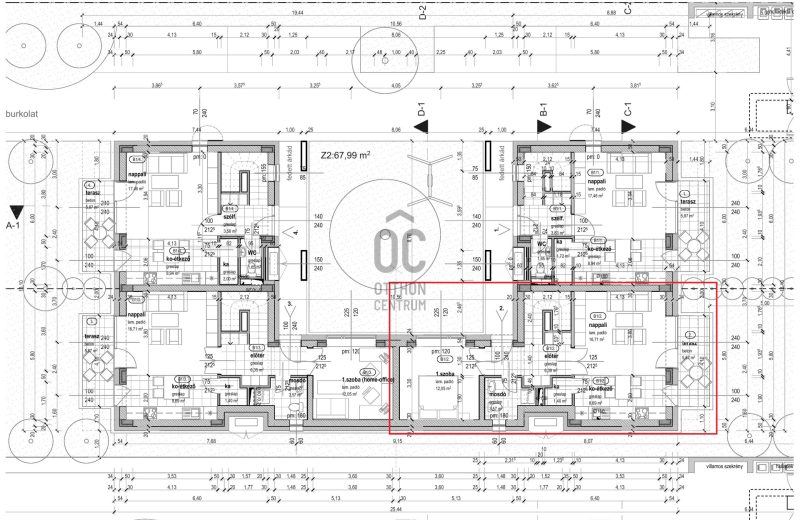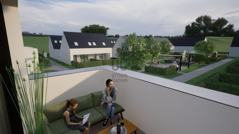 Nappali + 3 szobás, belső kétszintes lakás. A lakáshoz tartozik egy 9 nm-es fedett terasz és egy 6 nm-es tornác is. Az ingatlanhoz tartozik egy kötelezően megvásárolandó gépkocsi beálló, melynek ára 1,5 millió forint valamint saját udvarrésszel is rendelkezik. A lakóparkon belül játszótér, pihenőpark kerül kialakításra.- 30-as Porotherm tégla fala...
