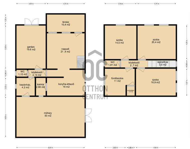 - 680 m2-es sík területen helyezkedik el, tégla építésű.