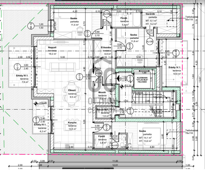 Lakás mérete: 104,6 m2 + 20,1 m2 terasz