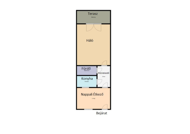- Az 1990-es években épült téglából, netto 42 nm. Elosztása a következő:hálószoba terasszal, konyha, nappali étkezővel, és zuhanyzós fürdőszoba.
