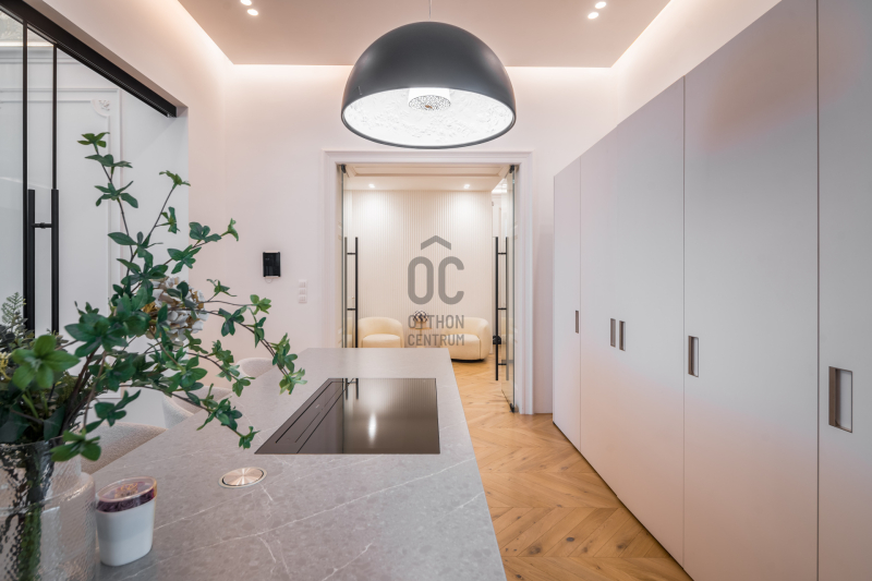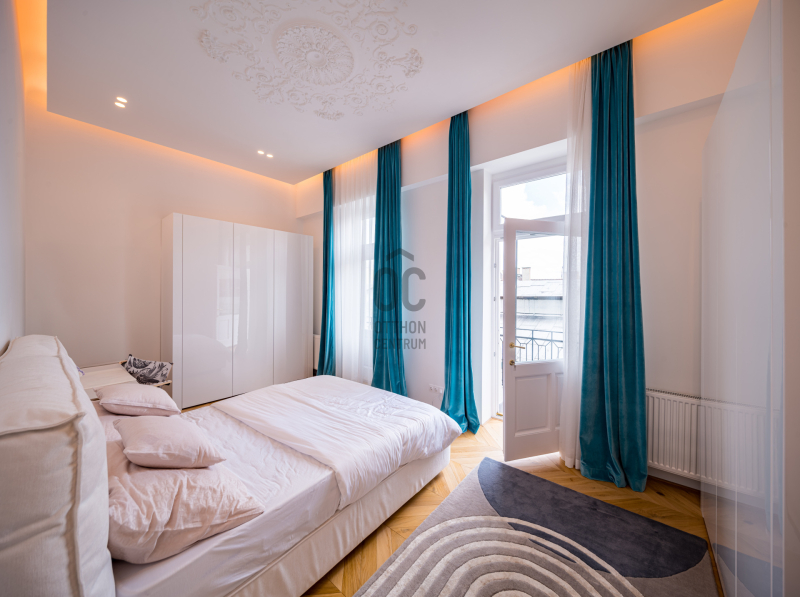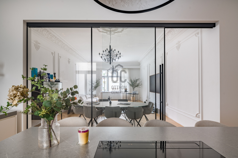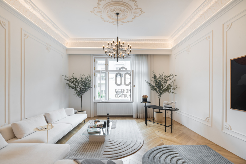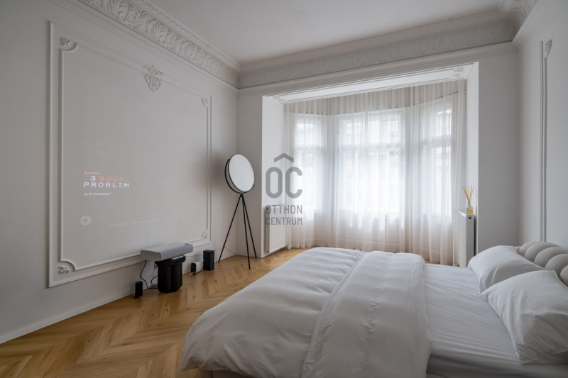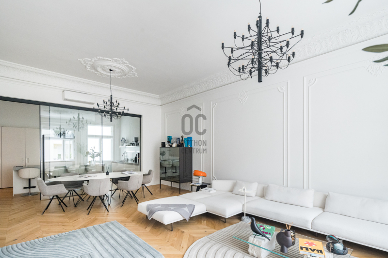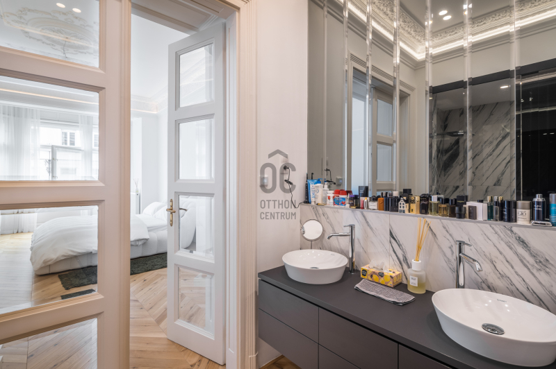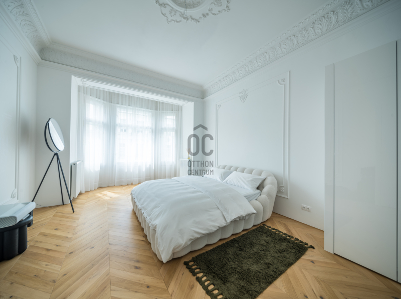 Az V.kerületben, a város szívében vagyunk: Szabadság tér, Honvéd tér és a Parlament közelében. A több, mint 200 m2-es ingatlan a modern stílust képviseli. A belsőépítészeti kialakítást az újonnan megtervezett építészeti elemek inspirálták. A modern irányt kiegészíti pár klasszikusabb díszítő elem, mint a fali stukkó. A díszítőelemek gyönyörű m...