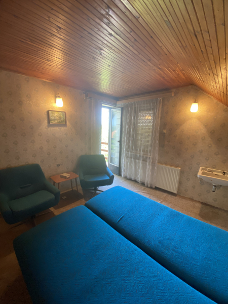 Panorámás nyaraló-lakó ingatlan eladóKözkedvelt nyaraló övezetben, Hévízi tótól 1800 méterre, Keszthely Kertvárosában eladásra kínálunk egy felújítandó ikerház egyik felét. A két szintes ház nyaralónak vagy állandó lakhatásra egyaránt alkalmas.