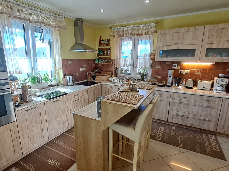 A téglából épült ház 2014-ben kapott használatbavételi engedélyt, és az évek során tovább korszerűsítettek. Földszint központi helyisége a tágas amerikai konyhás nappali-étkező, valamint a téli kert. ...