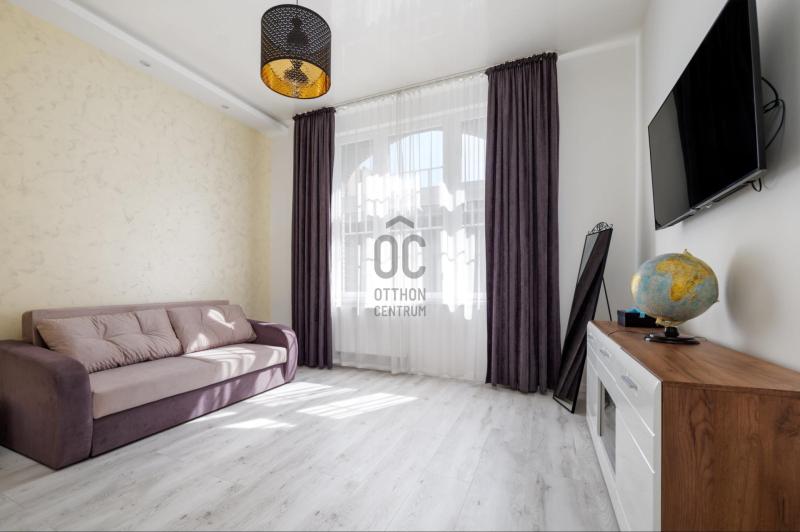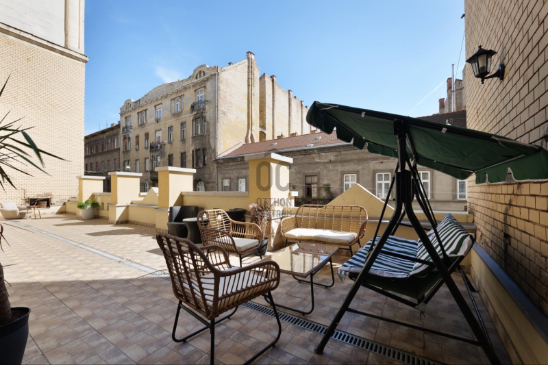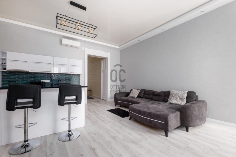 A belváros szívében, a Király utcában kínálunk eladásra egy frissen és teljeskörűen felújított ingatlant.A lakás netto 88 m², világos, tágas, terasz kapcsolatos amerikai konyhás nappali, két hálószoba és dupla komfort.