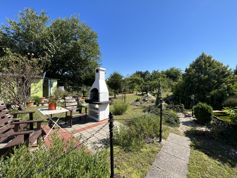 -szépen parkosított udvar 1580 m2 nagyságú