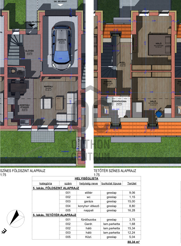 - kétszintes ( földszint + beépített tetőtér )