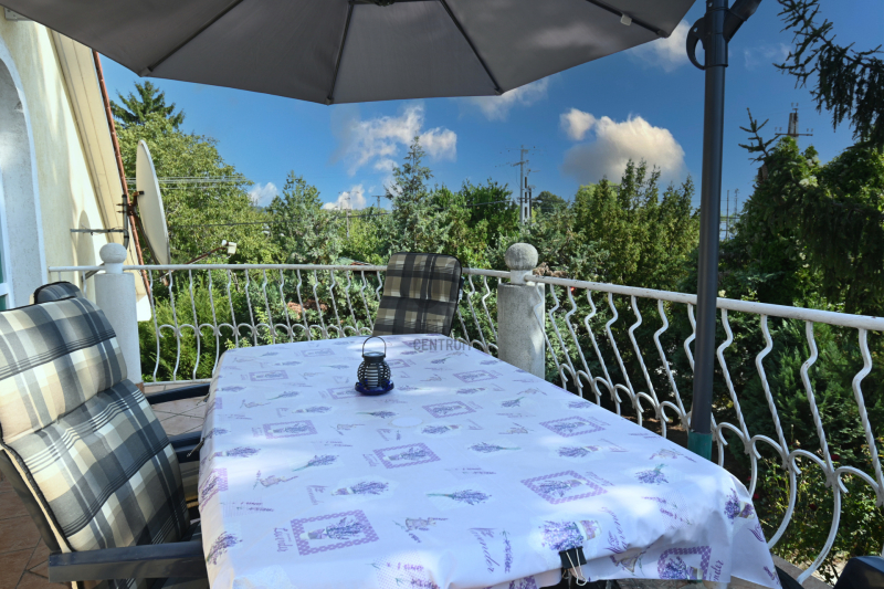 Eladásra kínálunk Balatonkenesén a 71-es út mellett (100m), egy 175m2-es (bruttó 210m2) kétszintes, tégla falazatú, cserép héjazatú családi házat. Az épület két részből áll, egy nagyobb 135m2-es beépített tetőteres és egy kisebb 40m2-es különálló apartmanházból, amelyben megtalálható a garázs és a pincerész.