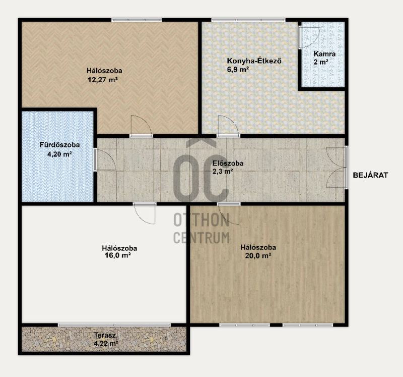 Szobák méretei: 20 m², 16 m², 12 m² – ideális családoknak vagy pároknak, akik több teret szeretnének.