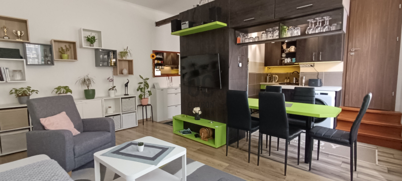 A lakás nettó alapterülete 62m2, melyet egy belső zárt udvarról lehet megközelíteni és tartozik hozzá egy 9m2 méretű saját pince. Parkolás biztosított a lakáshoz.