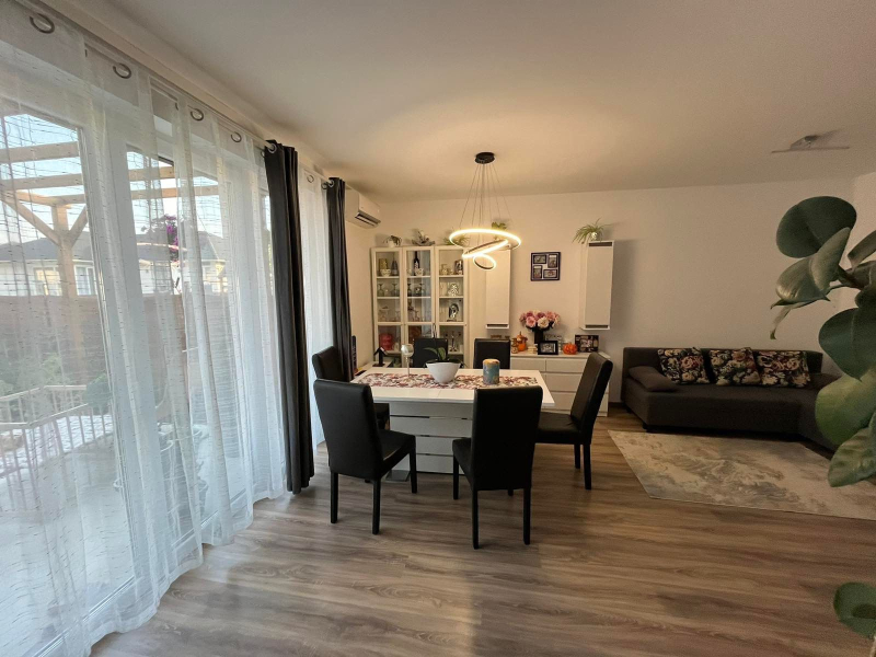 Közvetlenül egy erdő mellett, csendes környezetben duplakomfortos, 4 szobás ingatlan eladó.A társasházban, mely 2023-ban épült, 2 lakás található. A lakás 77 m2+15 m2 terasz elosztású, közel 500 m2-es telek tartozik hozzá.