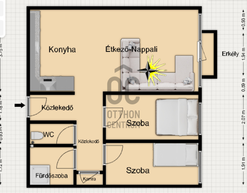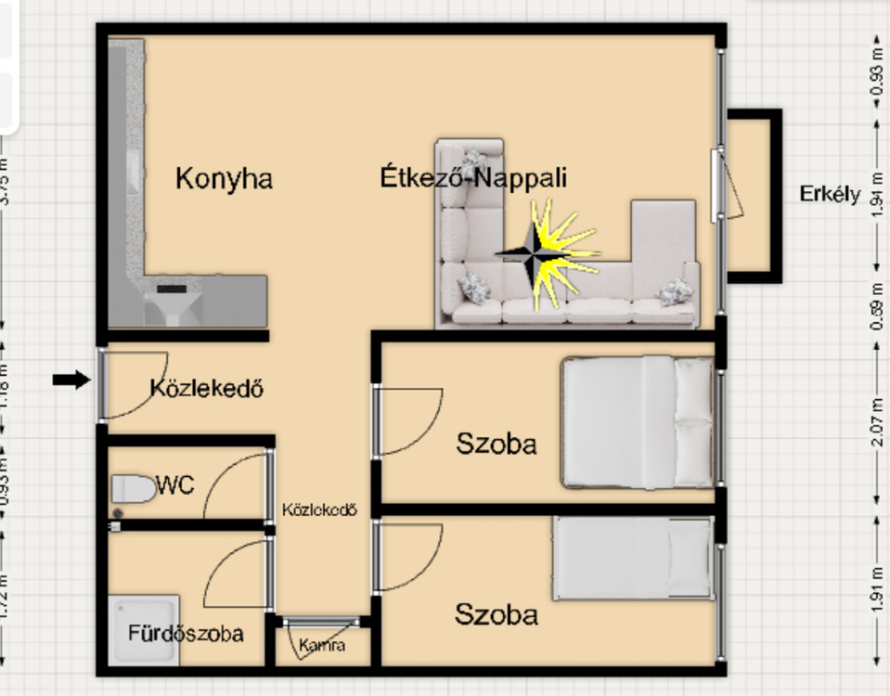 Terület: 60 m2