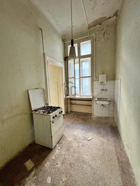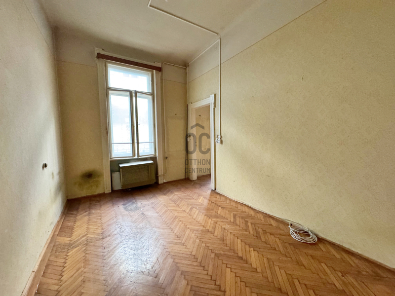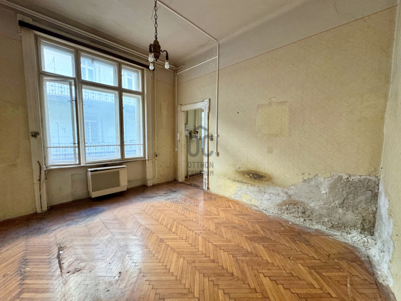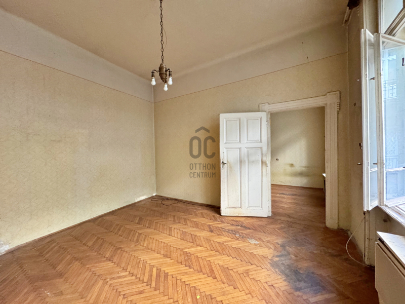 Udvari nézetű, de világos lakás. Állapotát tekintve teljesen felújítandó, elosztása jelenleg előszoba, kamra, fürdő, külön helyiségben WC, konyha, nappali és egy hálószoba.