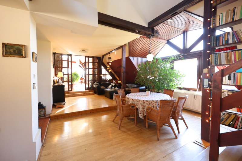 A római-kori amfiteátrum mellett, hangulatos, jól ellátott környéken, XX. századeleji építésű szecessziós épületben 237 nm bruttó alapterületű, nettó 189 nm-es, egyedi kialakítású, kétszintes, körpanorámás Nagyszombat utcai tetőtéri lakás eladó. A lakásban hat lakóhelyiség (2 nappali, 4 hálószoba), két fürdőszoba, 12 nm tetőterasz, nagy beépített a... + Tovább olvasom