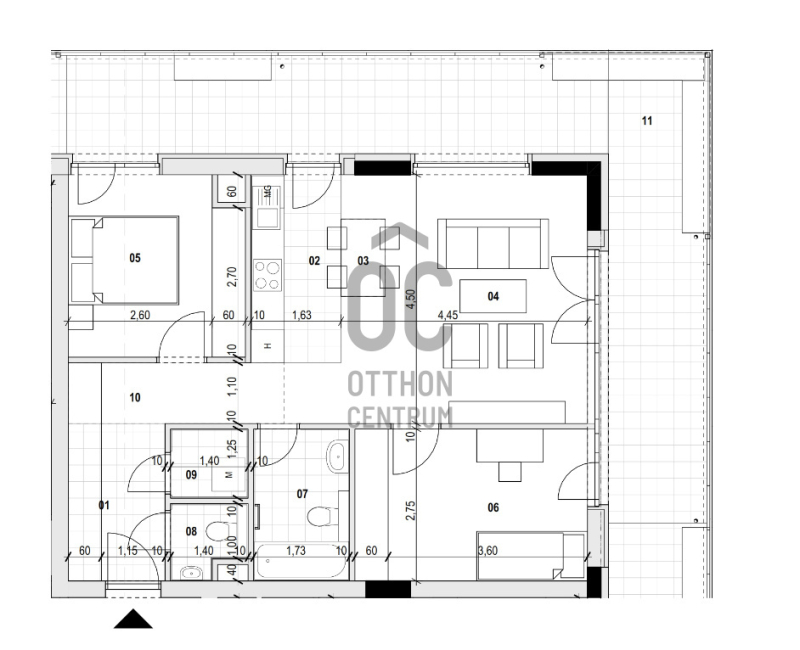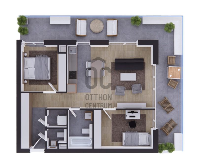 Ez a lakás zöld tetőkertre és mellékutcára néz. ÉNy-i Ék-i tájolású. Nappali+2 hálószobás, sarokterasszal, kiváló alaprajzzal. Ablakos konyha és háztartási helyiségProjekt bemutatása