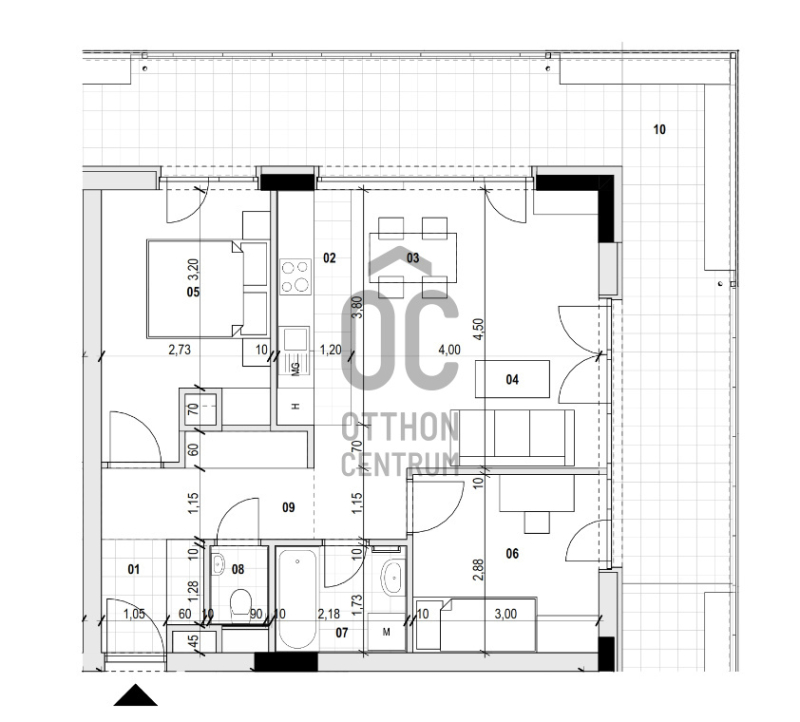 Ez a lakás belső kertre néz, ÉNY-i ÉK-i tájolású, ablakos konyhája vanProjekt bemutatása