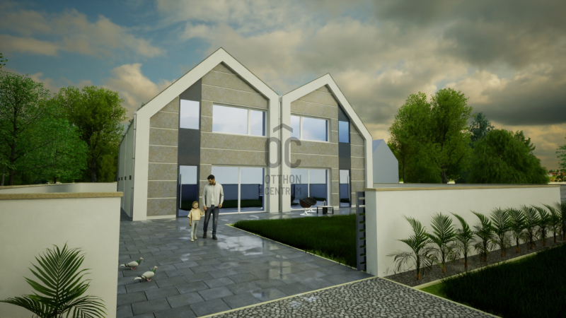 -Az épület hasznos alapterülete két szinten 128 m2, ami egy 413 m2-es telken helyezkedik el.