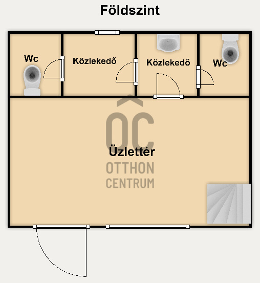 A helyiség hátsó részében 2 db wc is van, valamint zuhanyzó kialakítására is lehetőség van.