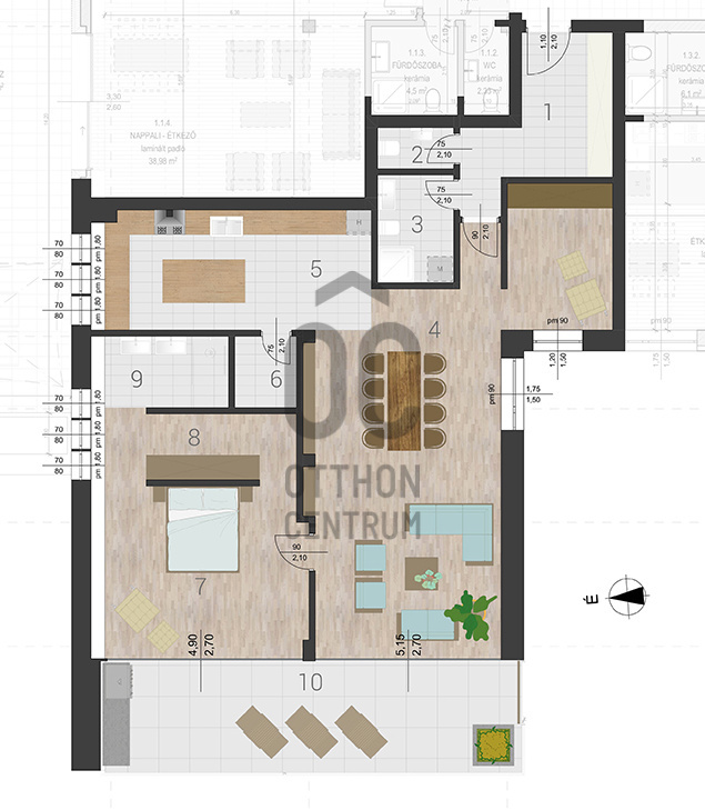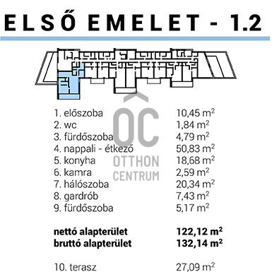 A nettó 122,12 m2-es apartman elosztása:előszoba: 10,45 m2
