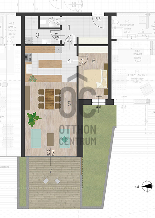 nappali-étkező: 29.03 m2