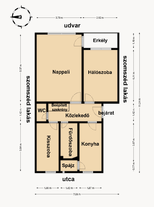 A társasház 4 szintes, zárt lépcsőházas, lakások száma 7. A nappaliszoba tájolása keleti és udvarra néző. A lakásnak jó a belső elrendezése, a helyiségek különnyílóak, a kelet-nyugati tájolás miatt a helyiségek világo...