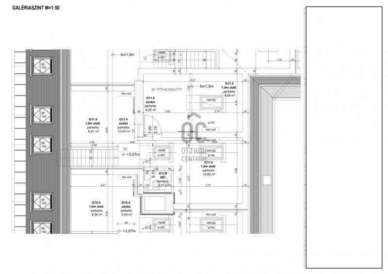 -emelet: 2 hálószoba, mosdó, gardrób helyiség.