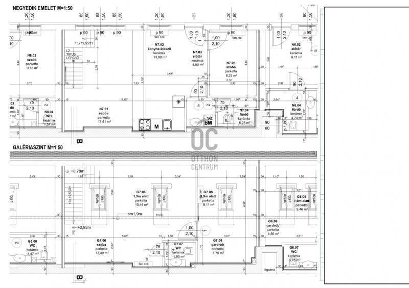 VII. New York Kávéházhoz közel, liftes társasház legfelső 4. emeletén új építésű belső kétszintes lakás eladó.-nettó 63nm, bruttó 94,6nm.