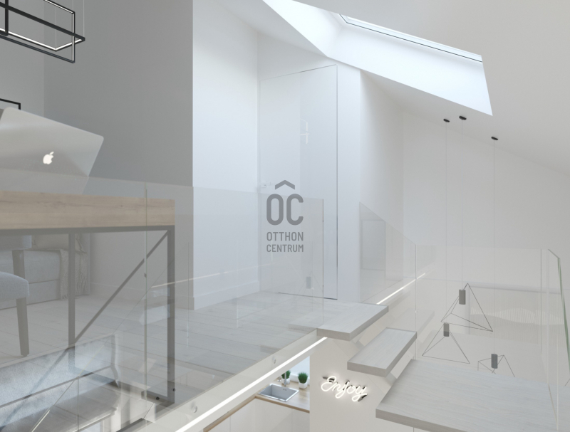 VII. New York Kávéházhoz közel, liftes társasház legfelső 4. emeletén új építésű belső kétszintes lakás eladó.