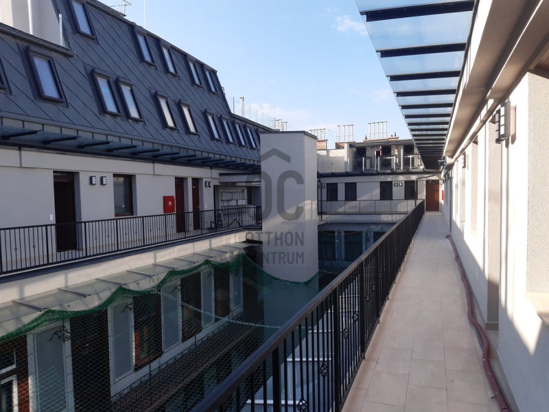 A lakás Petschacher Gusztáv tervei alapján készült épület 5.emeletén helyezkedik el, háromszintes, ablakai a csendes belső udvarra és utcára néznek.