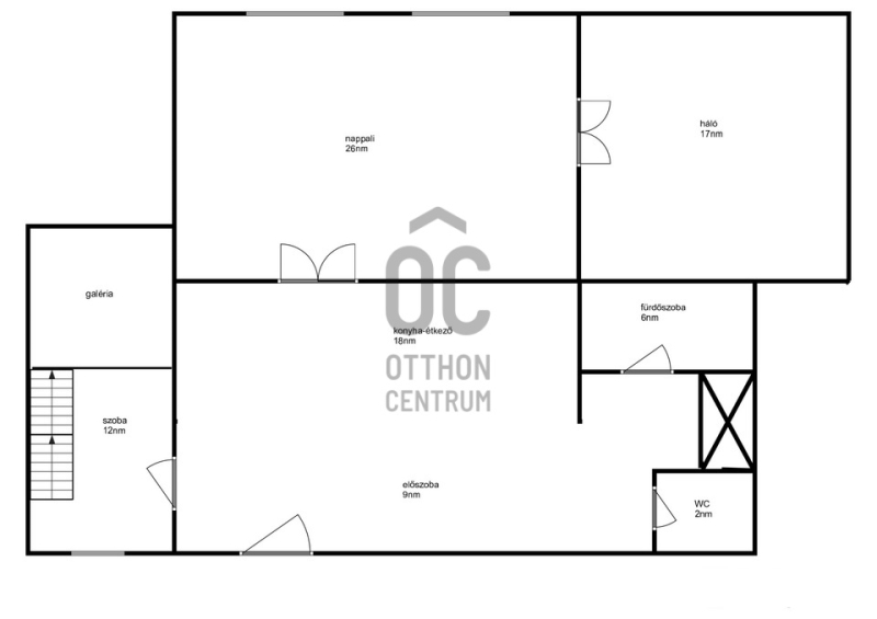 A nappali és a hálószoba ablakai az utcára néznek, a galériás kisebbik szoba ablaka a belső udvar felé.