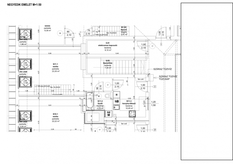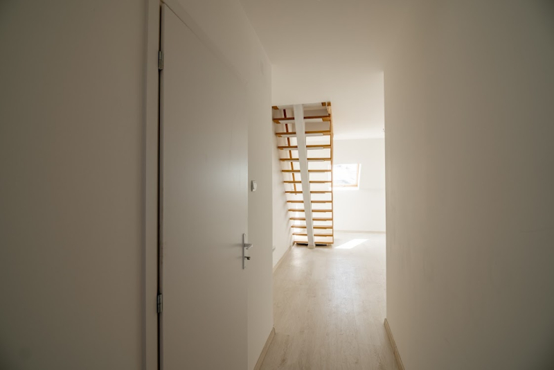 VII. Alsó erdősor utcában, liftes társasház legfelső 4. emeletén új építésű belső kétszintes 56nm-es lakás eladó.-alsó szint: 1 nappali, fürdőszoba +Wc, konyha étkezővel,