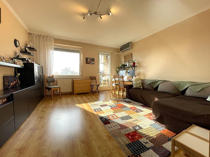 IV. kerületben, Káposztásmegyer II.-n, tíz emeletes liftes társasház V. emeletén, 70nm-es, 3szoba+hallos lakás eladó, 4nm-es ERKÉLLYEL és +10nm gardróbbal.