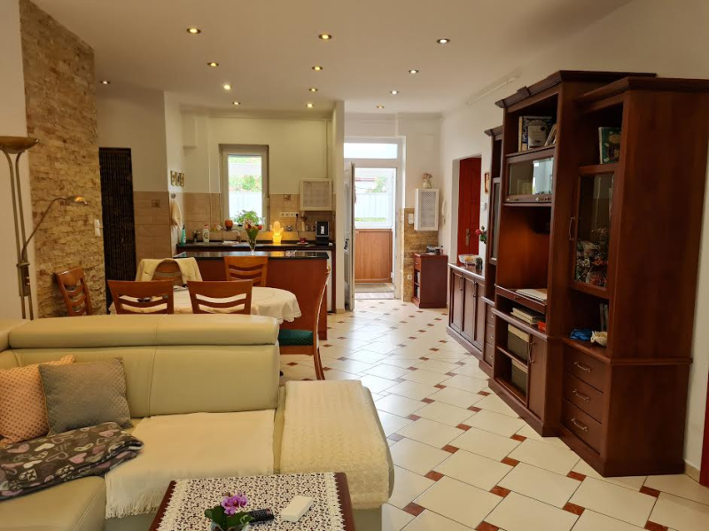 Rómaifürdőn, az igazi Ősrómain mellékutcában, 3 lakásos téglaépítésű társasházban eladó ez a 130 m2-es 5 szobás lakás 50 m2-es terasszal, 2 db.belső kocsibeállóval, tárolóval.Az ingatlan kétszintes, az első emeleten egy nagyon szép állapotú nappali + 2 szobás, 75 m2-es lakás található konyhával, fürdőszobával, kamrával, előszobával, külön wc-vel....