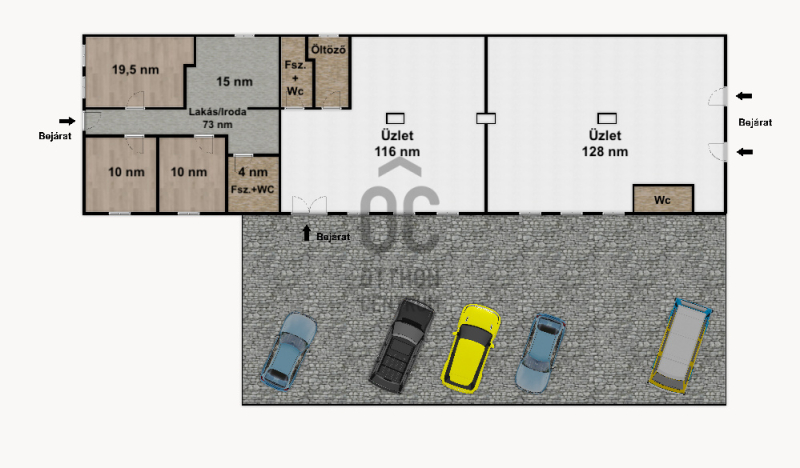 III. egység "lakás/iroda" 73 nm, amely 3szobás mindegyik szobája klimatizált, irodaházként is funkcionálhat.