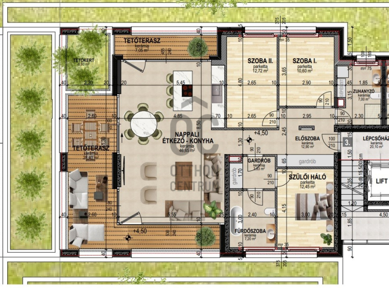 Az otthonokban tágas, 45 m2-es nappali-étkező-konyha tér - közvetlen terasz kapcsolattal. A hálószobák kialakítása: master ...