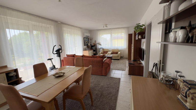 Debrecen frekventált részén, a belváros keleti oldalán eladó egy 2003ban épült, nagy teraszos, első emeleti 112 m2-es, hatalmas, 27,4 m2-es nappali + 3 külön nyíló szobás gázcirkó fűtéses szép állapotú lakás klímával, saját 123 m2-es körbekerített kerttel, önálló helyrajzi számon. Az ingatlan B38-as téglából épült, héjazata antracit betoncserép, ...