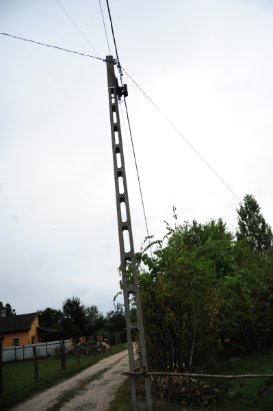 Aszfaltos út mellett körülötte állandóan lakott ingatlanokkal.