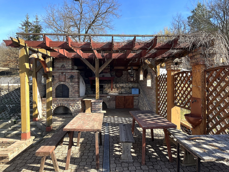 Az egész ingatlan terméskővel és téglával lett építve.