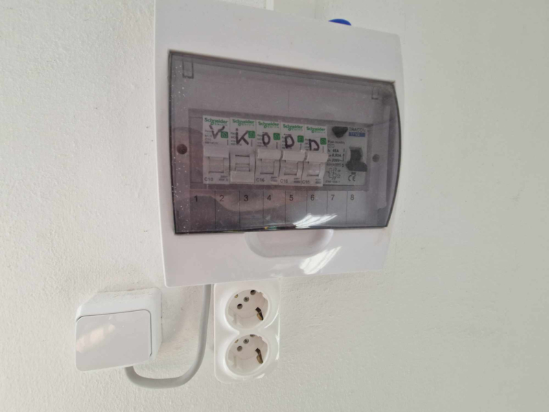 Az áramhálózat be van vezetve, korábban villannyal fűtötték. (32A)